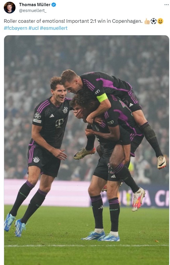 好像过山车!穆勒赛后更新社媒庆祝拜仁21逆转