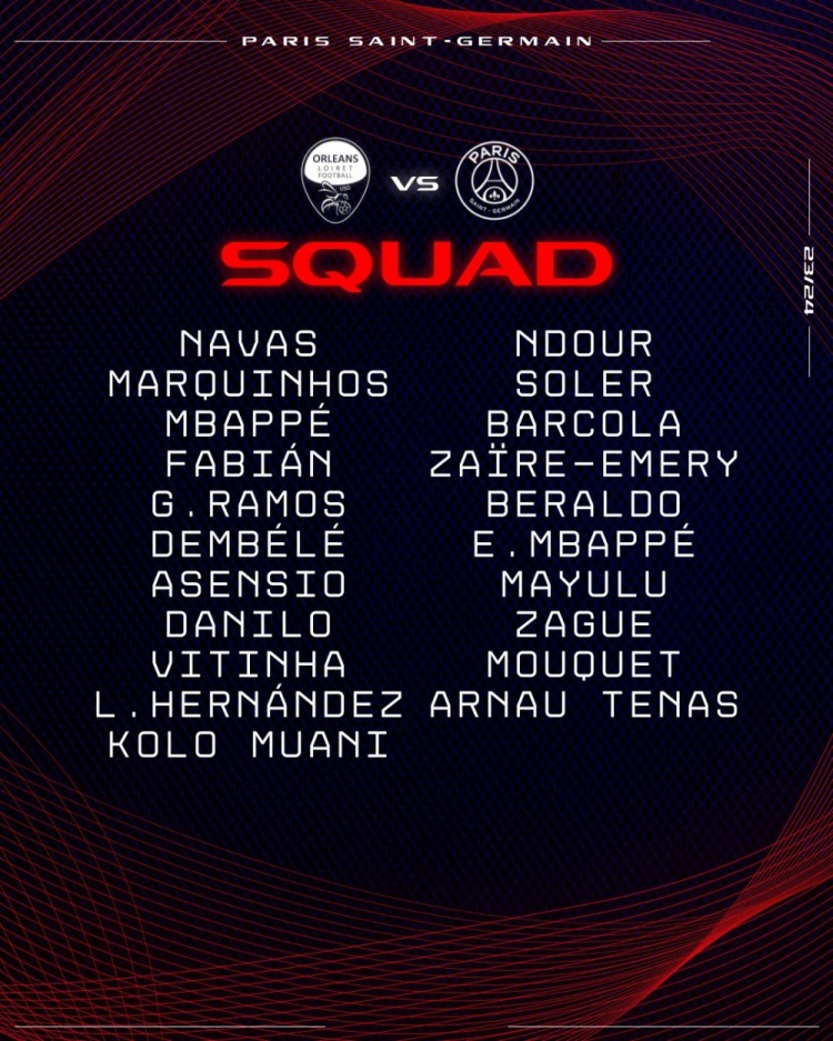 巴黎法国杯名单:姆巴佩兄弟、登贝莱在列,多纳鲁马、什克缺席