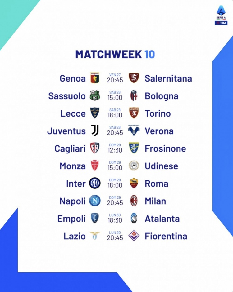 意甲第10轮开球时间:焦点战那不勒斯vs米兰在30日345打响